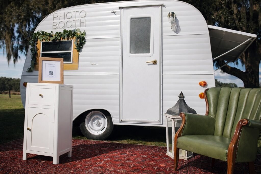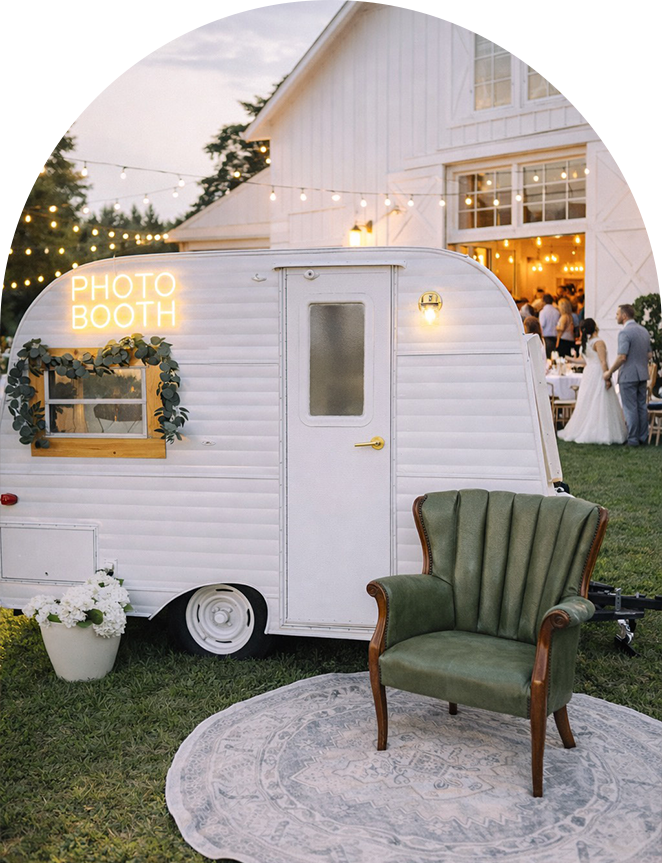 1970s Scotty vintage camper lovingly renovated into a one of a kind photo booth experience. Originally discovered in Tampa, Florida, Stella’s story began all the way in Alaska, carrying timeless, well traveled charm wherever she goes. With a crisp white exterior and thoughtfully styled interior, Stella blends modern design with vintage character, making her the perfect fit for any event aesthetic or color palette. Complete with a professional photo booth setup, Stella is available for weddings, birthdays, graduations, corporate events, and more. Step inside, strike a pose, and leave with personalized photos your guests will treasure for years to come.